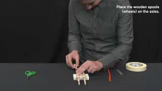 Youth imagine and plan toy vehicles that meet specific criteria. They begin attaching axles to vehicle bodies.